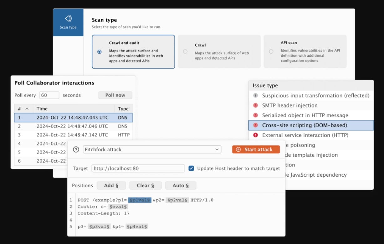 Burp Suite Pro is also a popular tool a bit similar to Metasploit but it has a user-friendly interface for its free users and supports OOB vulnerability scans. With this tool, users can even map an application's attack surface and examine responses that take place between programs and target servers.