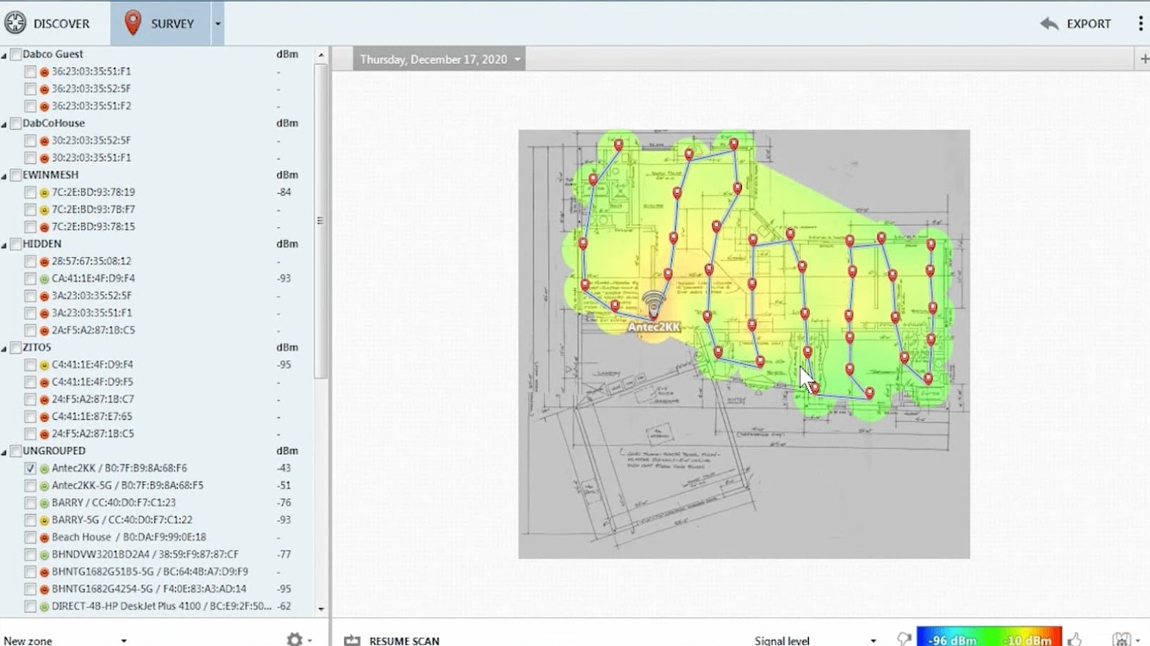 • Automatic heatmap. Once you do a manual site survey, the tool will generate a heat map automatically